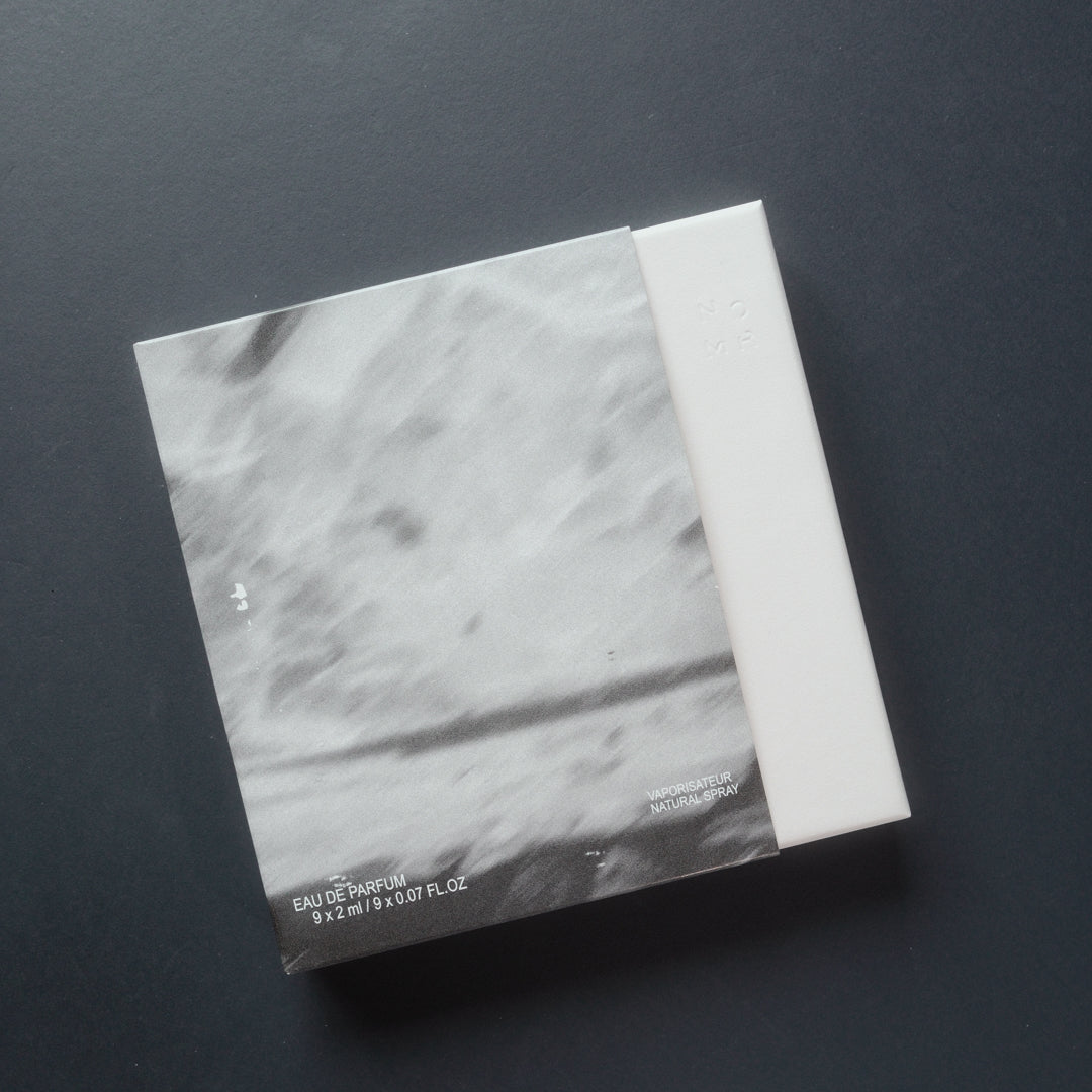 Collected Fragments Discovery gathers 9 scent pieces from NOMR’s first release. Not entire series. Not full statements. Just fragments selected from a larger body of work.